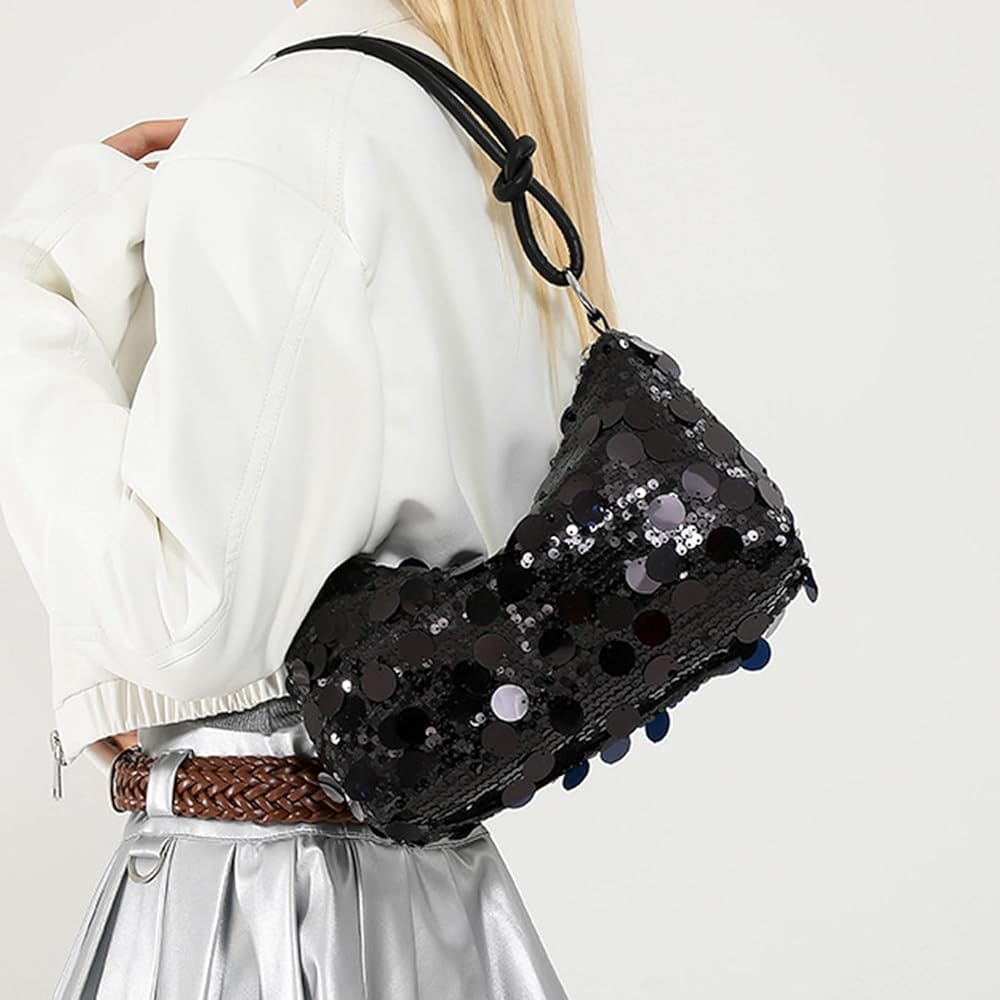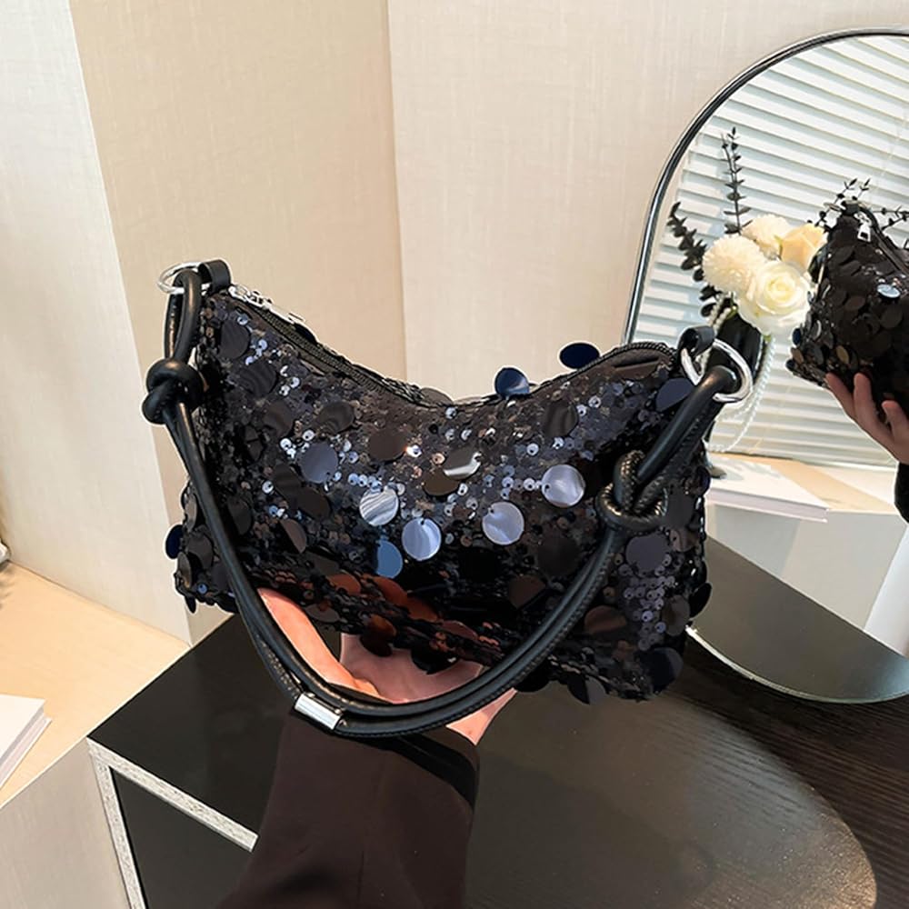 Sparkly Purse Double zip closure, convenience and safe to use. Can adjustable shoulder strap, bring more comfort wearing. As a shoulder bag or a tote handbag.