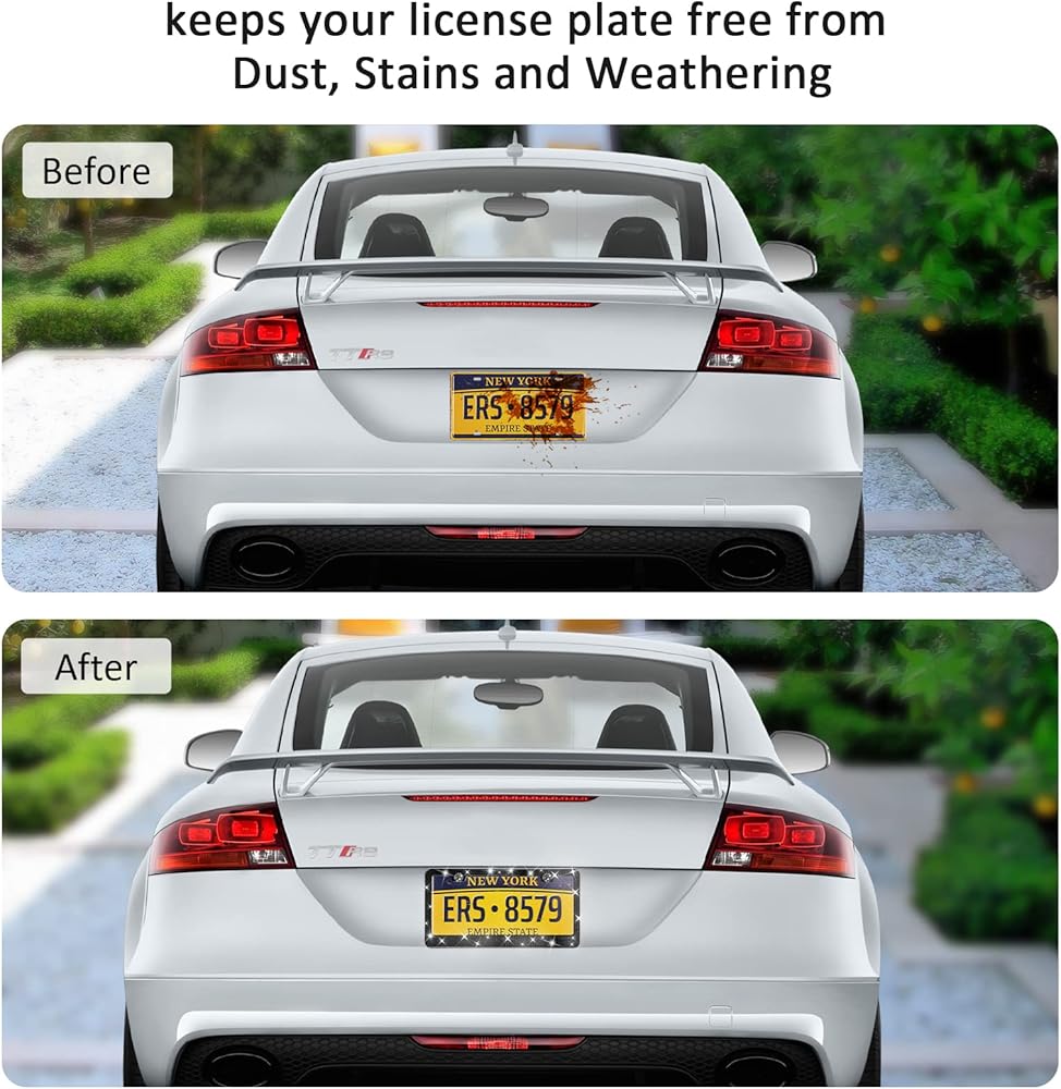 Upgrade your vehicle's style with the Bling License Plate Frame and Clear Cover Set - order it now!