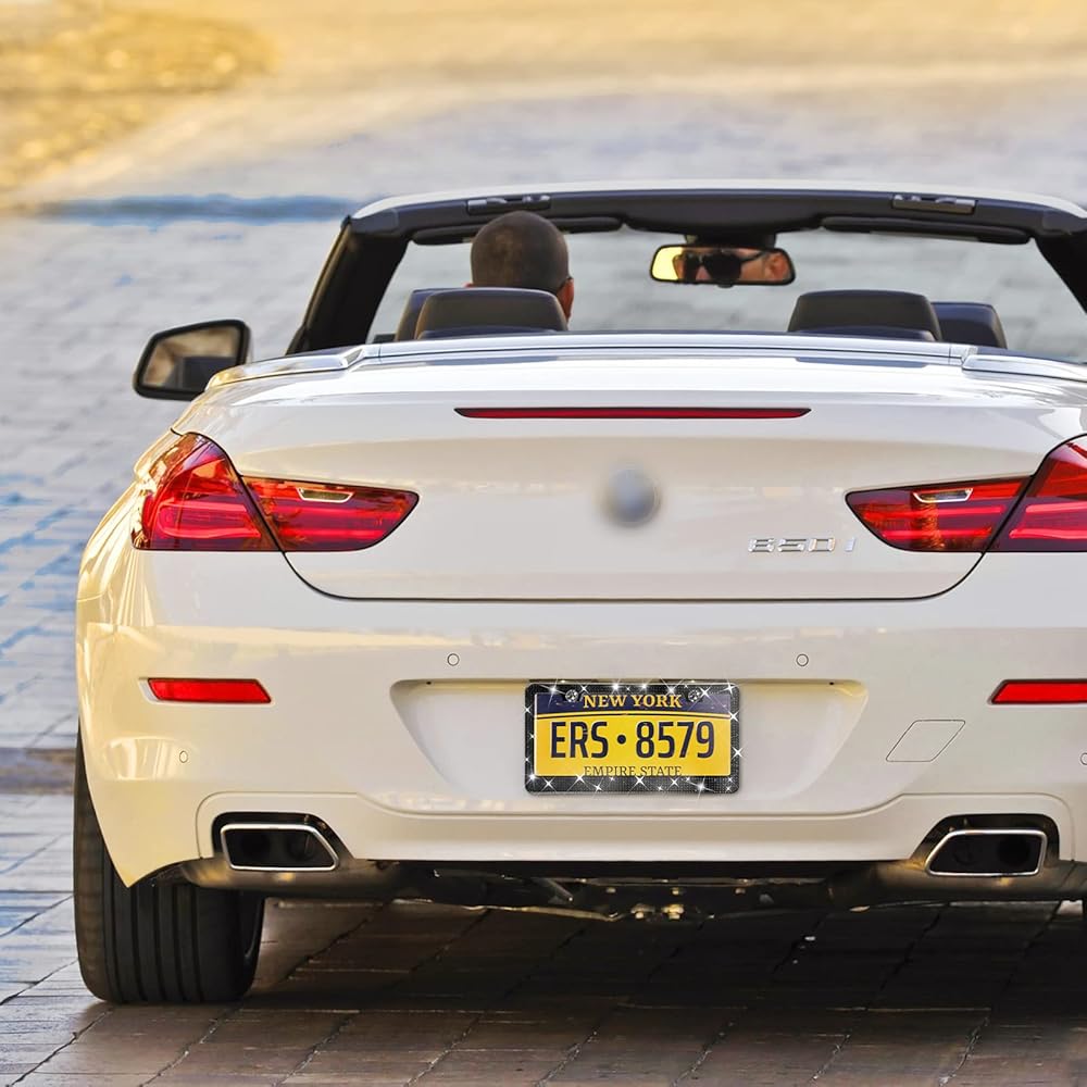 This set includes a dazzling license plate frame with sparkling rhinestones that catch the light and add a touch of glamour to your car.