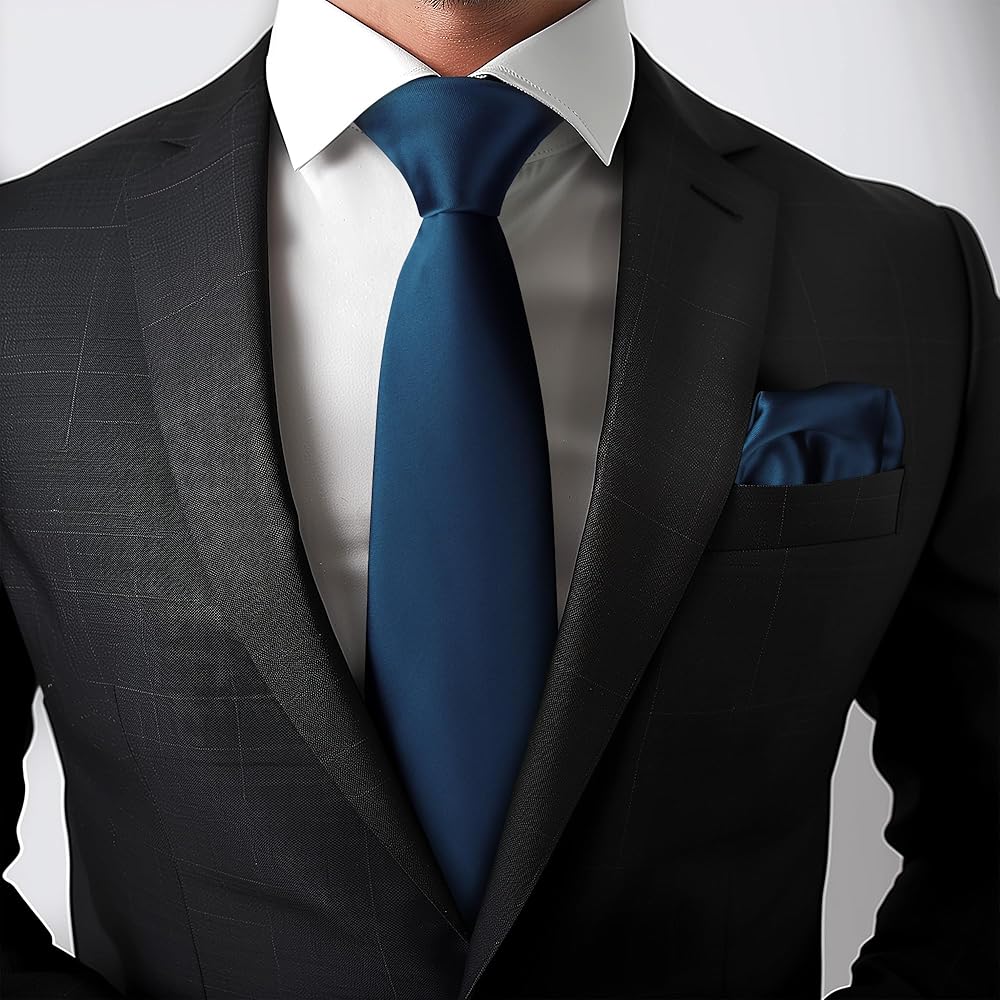 Men Tie Set Solid Necktie Pocket Square Hankerchief Set 3.15" (8CM)