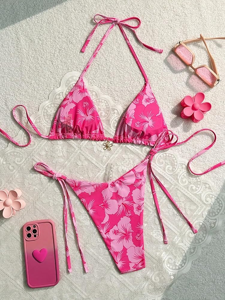- This Summer Bikini features removable Padded,High Waist,Floral Print, All Over Print, Knot, Tie Back