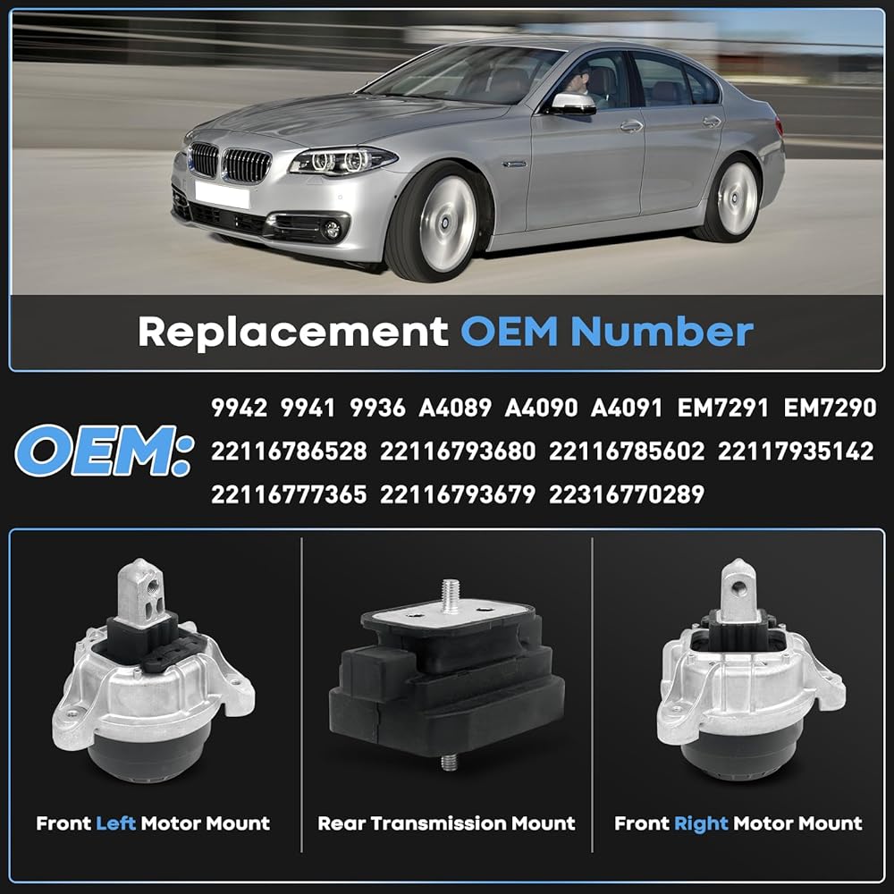 Package Included — 1x rear lower engine torque strut mount +1x hydraulic right engine mount + 1x left transmission mount