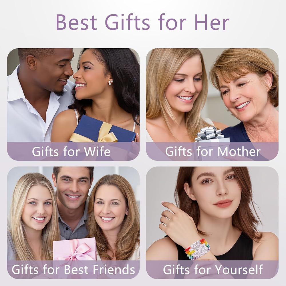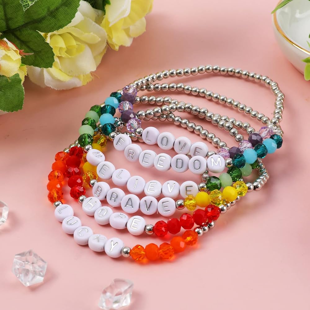 🌈HIGH QUALITY MATERIAL🌈Crafted from premium glass beads and durable plastic beads, this faceted glass beaded bracelet ensures quality and durability. Each bead is carefully selected and strung, ensuring that every inch of the bracelet exudes high-quality charm. The elastic bracelet is suitable for most women's wrists.