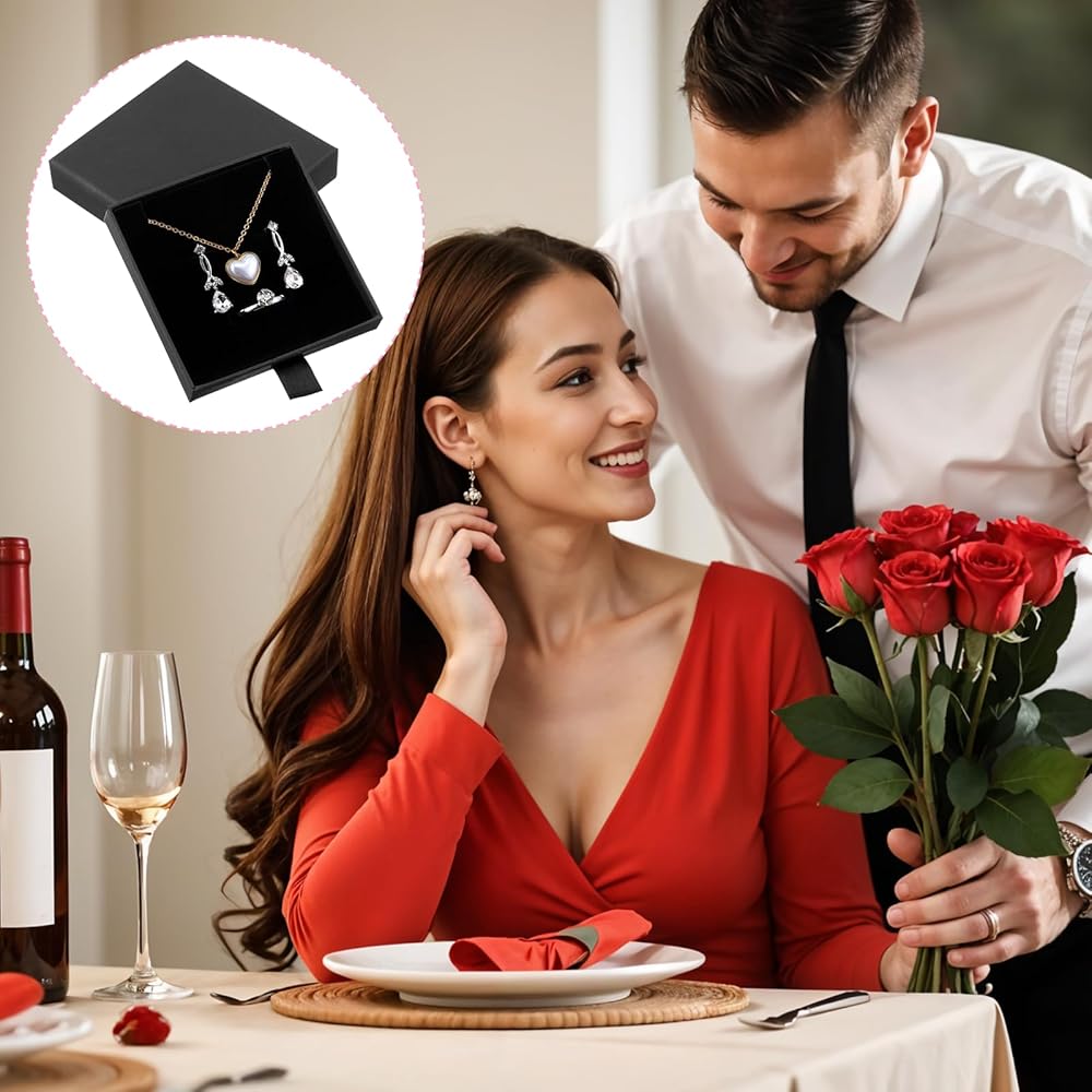 【Elegant Design】Our jewelry gift box features a sleek black design with a convenient pull-out drawer structure, allowing easy access to your jewelry. These small jewelry gift boxes can be personalized with ribbons or decorations, making them perfect for any occasion