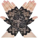 Lace Gloves Fingerless, Short Floral Lace Gloves Women Tea Party, Fingerless Glove