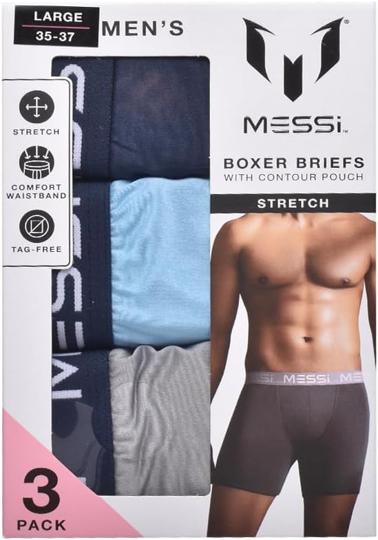 MESSI BOXER BRIEFS FOR MEN: Enjoy all day comfort with these Messi Stretch Boxer Brierfs for Men that are extra soft and stretchy. Our seamless set of 3 boxer briefs are ready for action in sizes small, medium, large and x-large