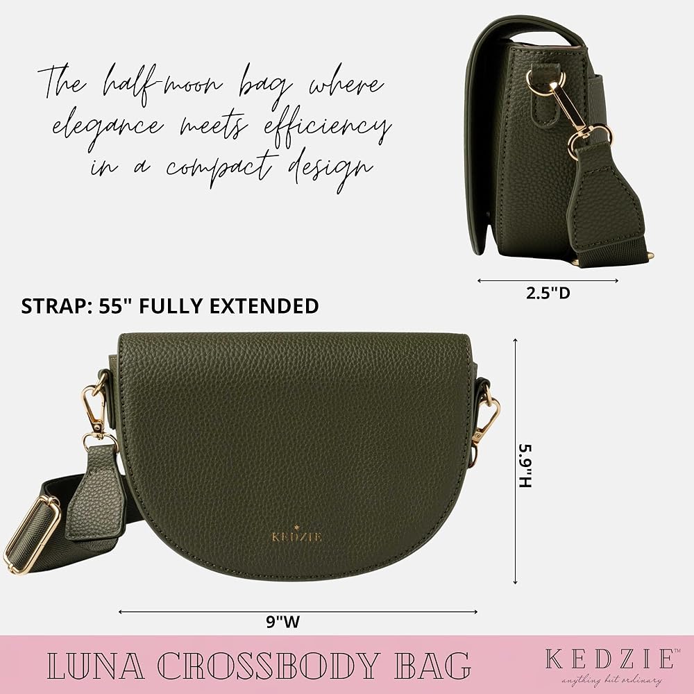 HIGH-QUALITY MATERIAL: Good style is never just a phase. Brighten up your look with a bold half-moon silhouette in pebbled vegan leather. Made of 100% polyvinyl chloride and lining: 100% polyester. This cross body purse for women is big enough to carry your everyday essentials.
