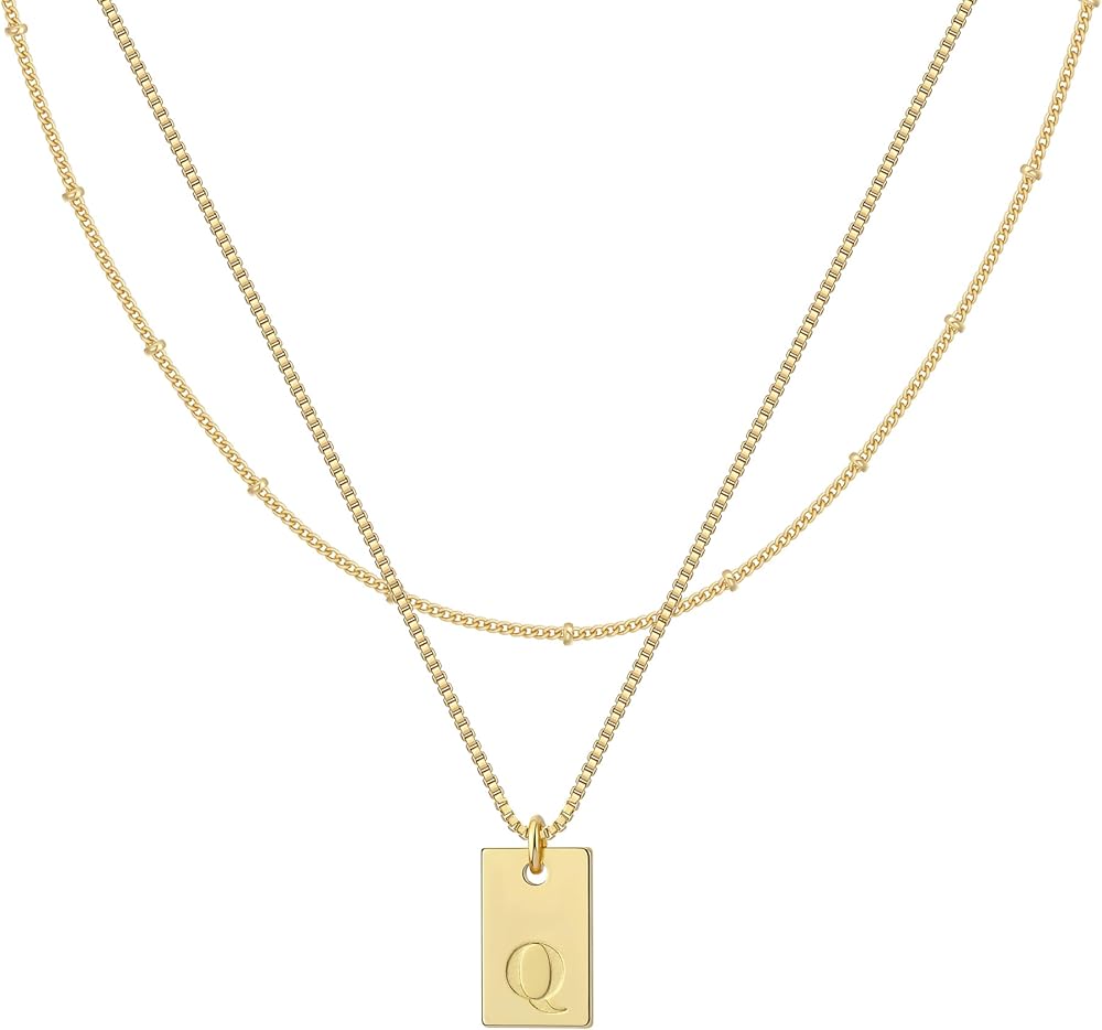 Dainty Layered Initial Necklace: this gold necklace set consists of two separate necklaces, a beaded necklace and a small rectangular letter pendant necklace; the simple and classic design allows you to present different matching effects; the special letter design is meaningful and signifies good wishes