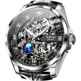 OUPINKE Mechanical Watch: Watch built-in automatic mechanical movement, using 21 ruby bearing shaft to reduce running friction, longer service life. Soft leather strap for breathable comfort. The watch adopts double folding butterfly watch buckle, fashion and convenient. Very suitable for men of all ages.