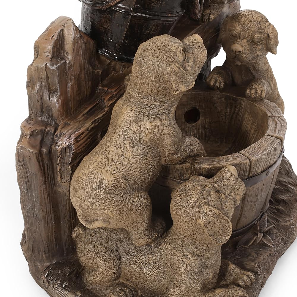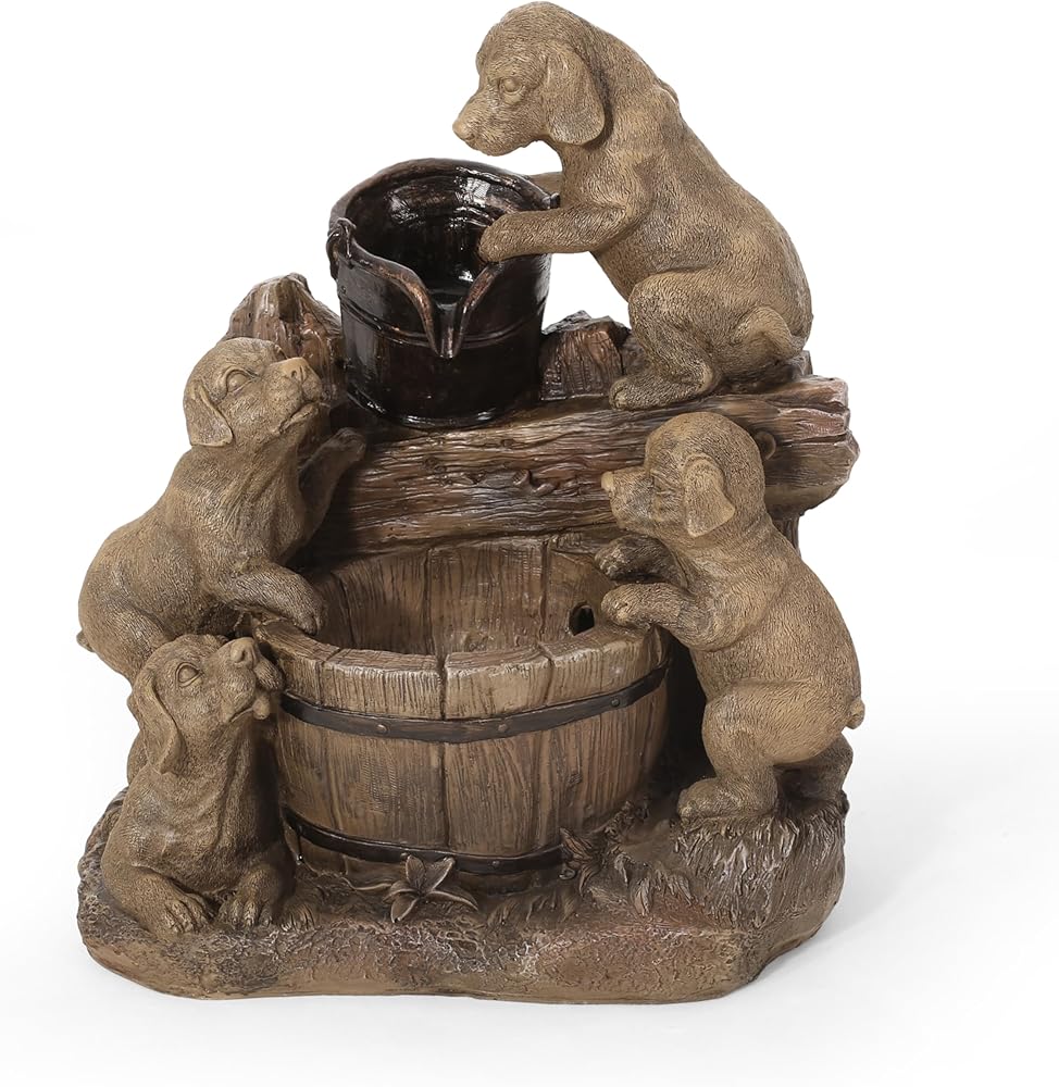 Key Selling PointsThis garden fountain features a playful design of four adorable puppies and a serene waterfall flow. The gentle sound of cascading water provides a peaceful ambiance, making it an for relaxation and enjoyment.