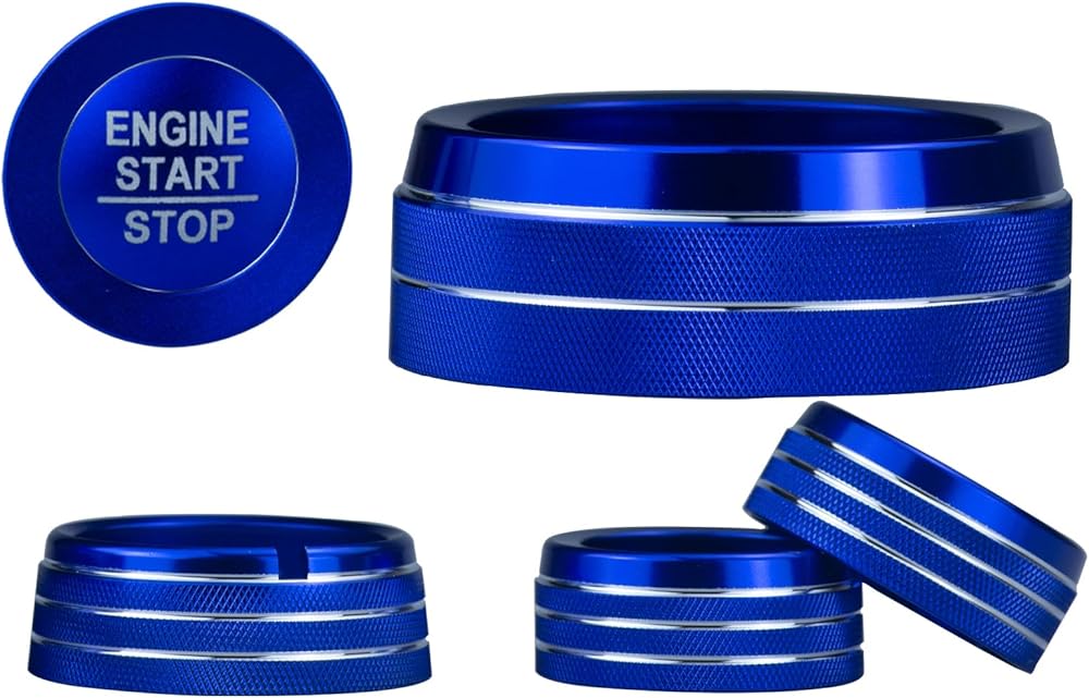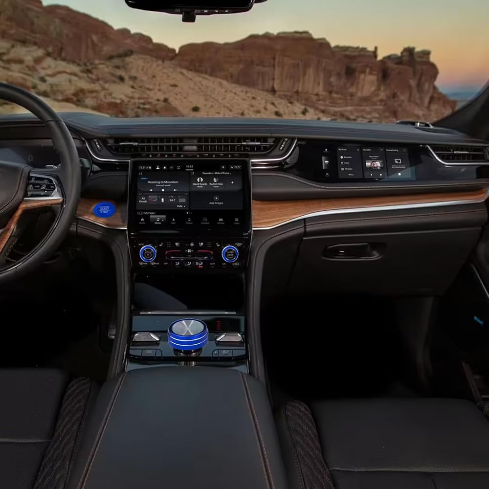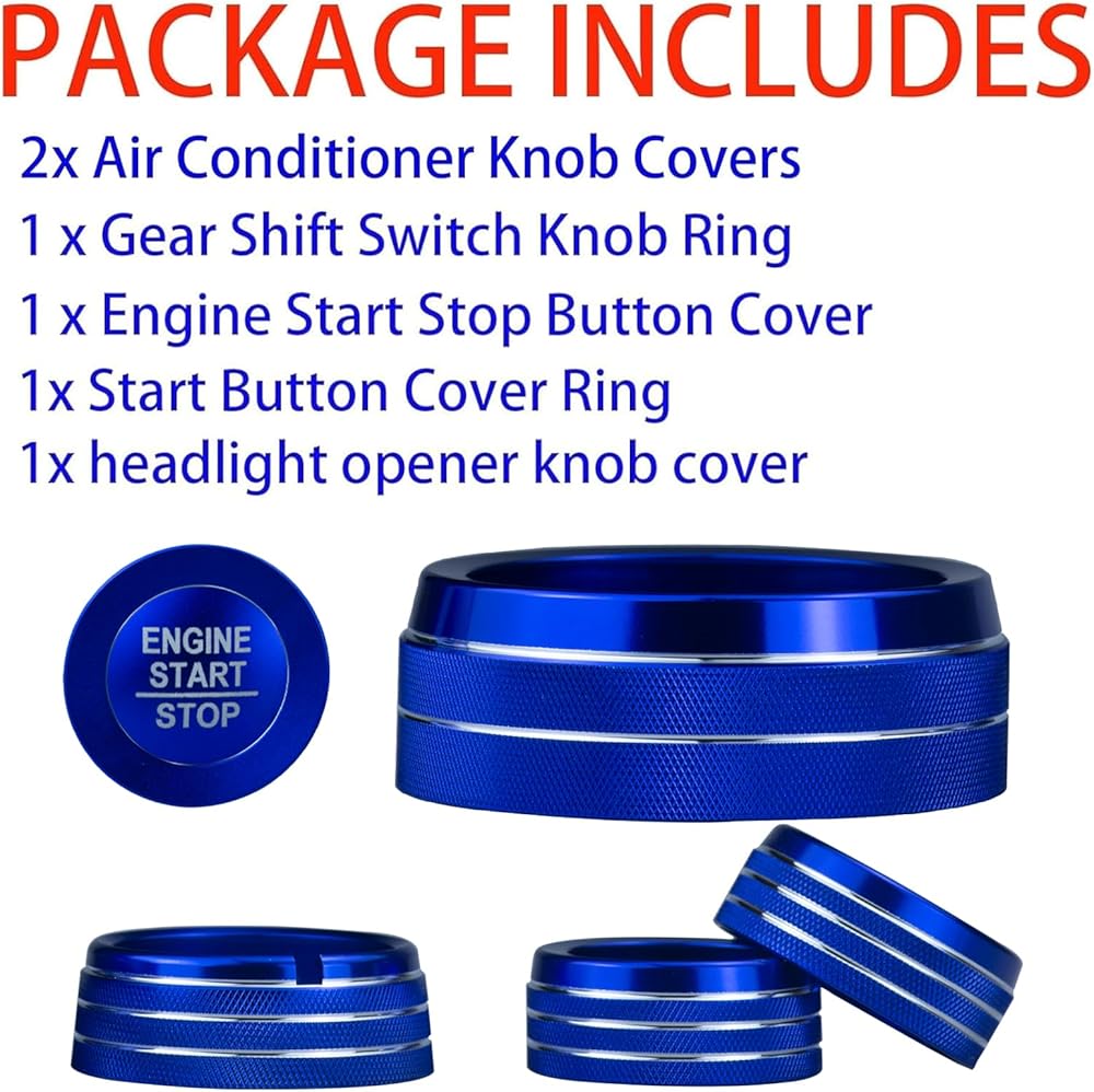 for Jeep 2022-2025 Grand Cherokee/Grand Cherokee 4xe/Grand Cherokee L car Interior 6-Piece Set, Shift Switch, air Conditioning Adjustment, Headlight Switch knob, Start Button Cover/Ring (Blue)