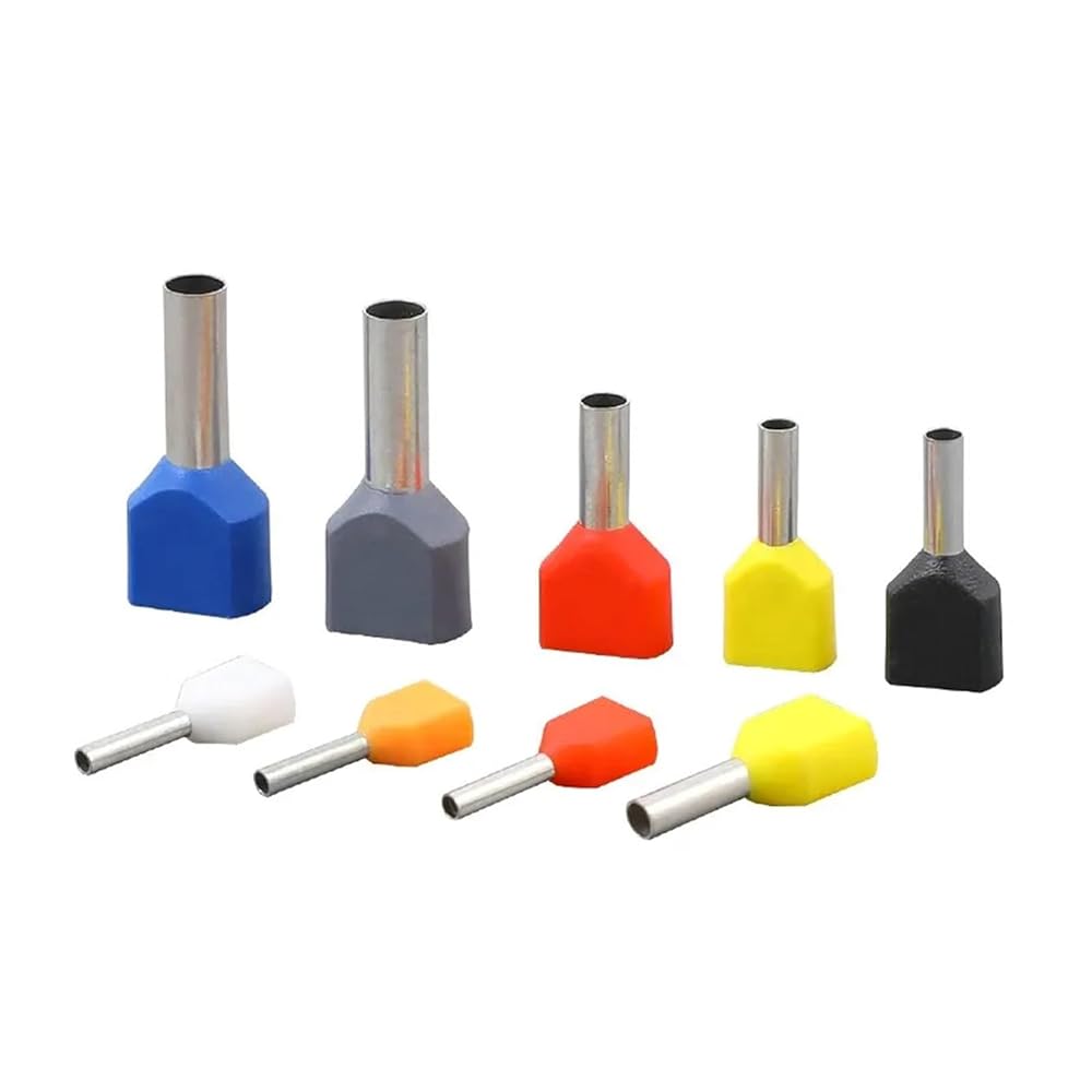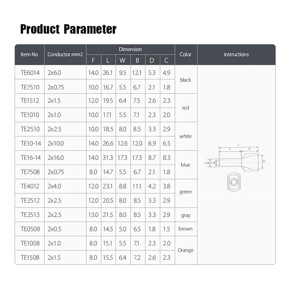 100pcs TE0508 TE1508 TE7508 Double Tube Double Wire Wire Insulation Ferrule Crimp Terminal Block Connector Terminator (Color : TE 0508, Size : Black)