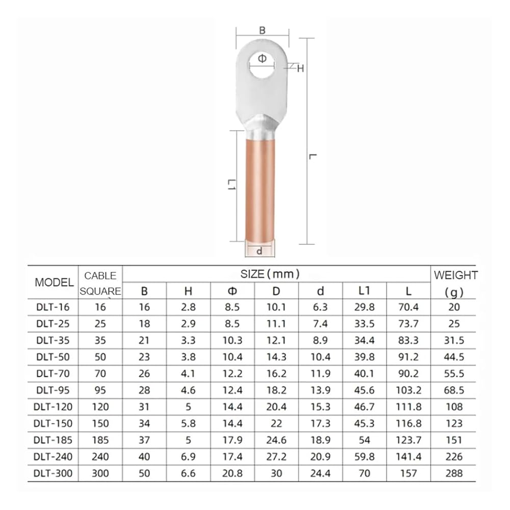 ECM WiringCopper Aluminum Cable Terminal DLT16 25 35 70 120 Circuit Breaker Bare Terminal Cable Lug Wire Connector Splice Kit
