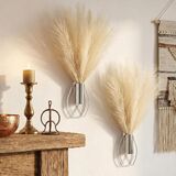 2 Pieces Indoor Metal Wall Decor: you will receive 2 pieces of beige artificial hanging pampas grass and 2 pieces of gold metal geometric wall-mounted vase; They are combined to perfectly fit your modern minimalist geometric, farmhouse, or bohemian style decoration, making your home or office more colorful and vibrant