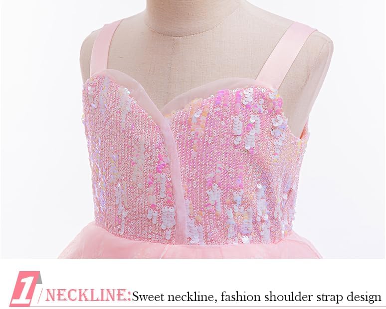 • ELEGANT DESIGN: You will get a piece of classic,elegant and unique princess dress.This stunning ball gown features a sparkling sequined bodice and layers of airy tulle for a dreamy, princess-inspired look.