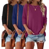 Features: Our 2025 women's fall tops feature a crew neck, solid color design, and 3/4 sleeves, dressy plain tshirts for women. Making them a versatile choice for casual blouses and basic tops