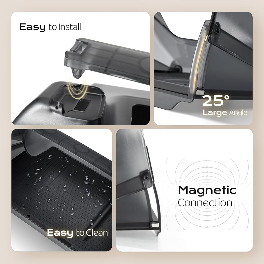 【Clever Design with Convenient Access】The storage tray cleverly utilizes the space behind the center screen for easy access to essentials like tissues, sunglasses, or small items. The built-in magnetic feature helps secure metal objects, ensuring everything stays in place without obstructing your view.