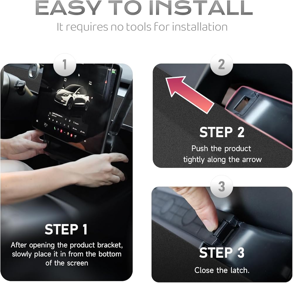 【Custom Fit for Tesla Model Y/3】This under-screen storage tray is specifically designed for Tesla Model 3 Highland (2024-2025) and Model Y Juniper (2025), fitting seamlessly beneath the center console screen to provide extra storage without interfering with the vehicle's functionality.