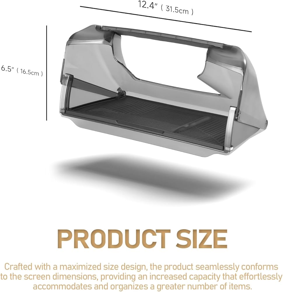 【Quick and Easy Installation】This under-screen organizer installs in just minutes with no tools required. It features a secure, snap-on design with cushioned silicone pads to prevent screen damage. The high-temperature-resistant acrylic material ensures durability, maintaining both function and style for the long term.