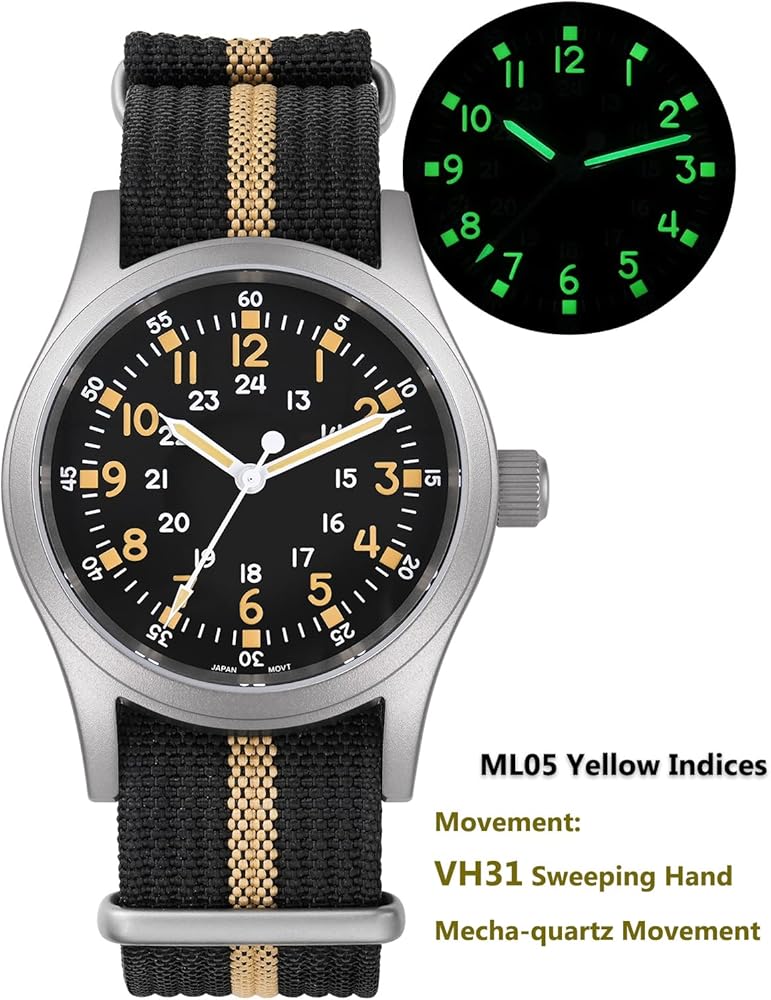 VH31 Mecha-Quartz Movement Sweep Hand: Militado ML05 quartz watch made of top hat domed sapphire crystal with high clear AR coating, 316L solid stainless steel and screw-down crown.