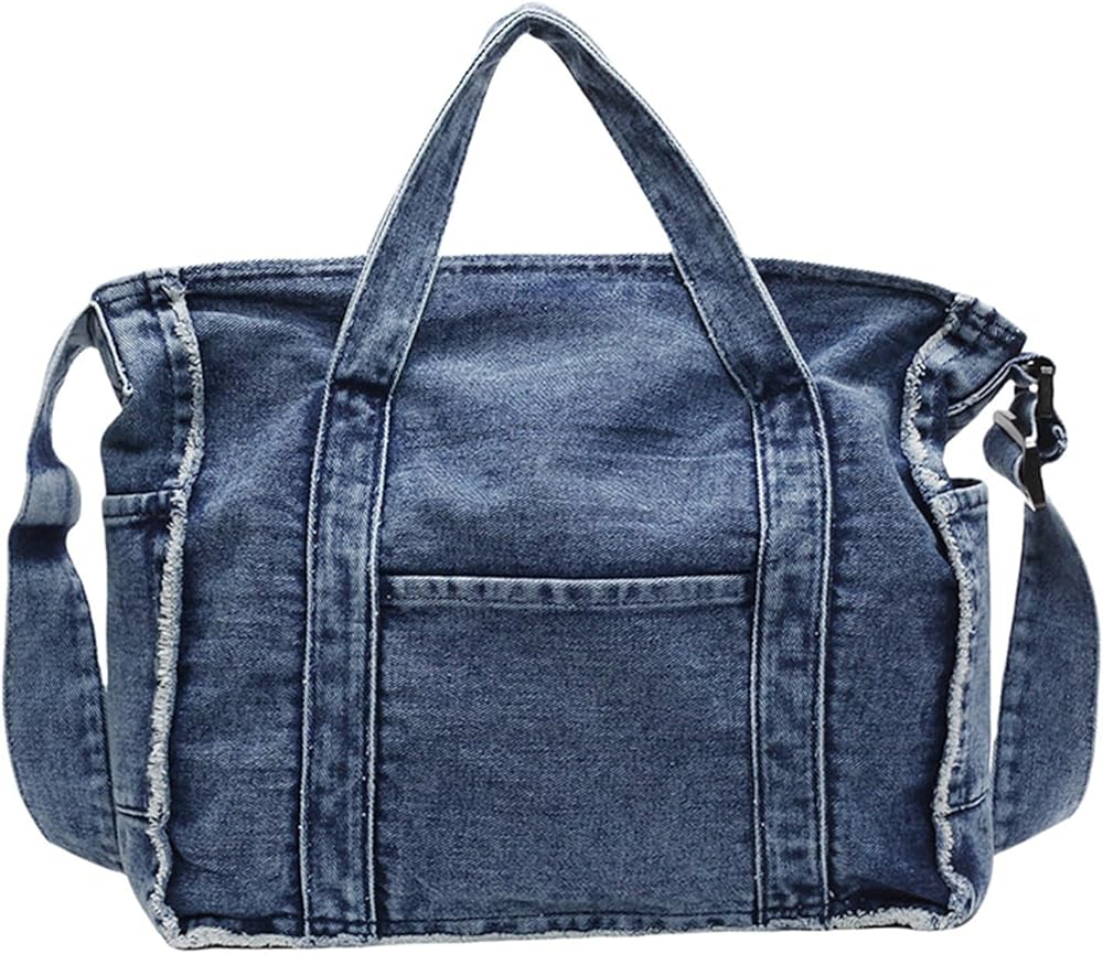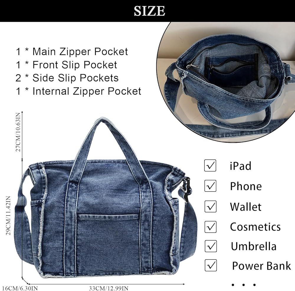 SIZE & CAPACITY: The size of this denim purses for women is about 15.35*4.72*11.81in. The large capacity design makes it easy to accommodate iPad, mobile phones, folders and other items, which is very suitable for daily commuting and travel.