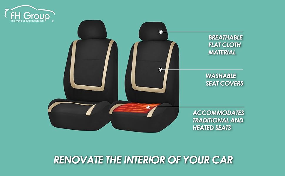 🚘[STUNNING DESIGN] Enhance the look of your car interior with the classic yet stylish designs of FH Group's Cloth car seat covers. We offer a full set of car seat covers for women, for men, and everyone!
