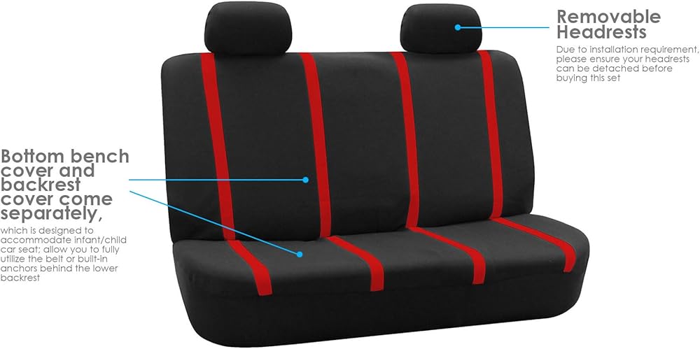 FH Group Car Seat Covers Rear Set Cloth - Car Seat Covers with Removable Headrest,Universal Fit,Automotive SeatCovers,Washable Car SeatCover for SUV,Sedan,Van Red