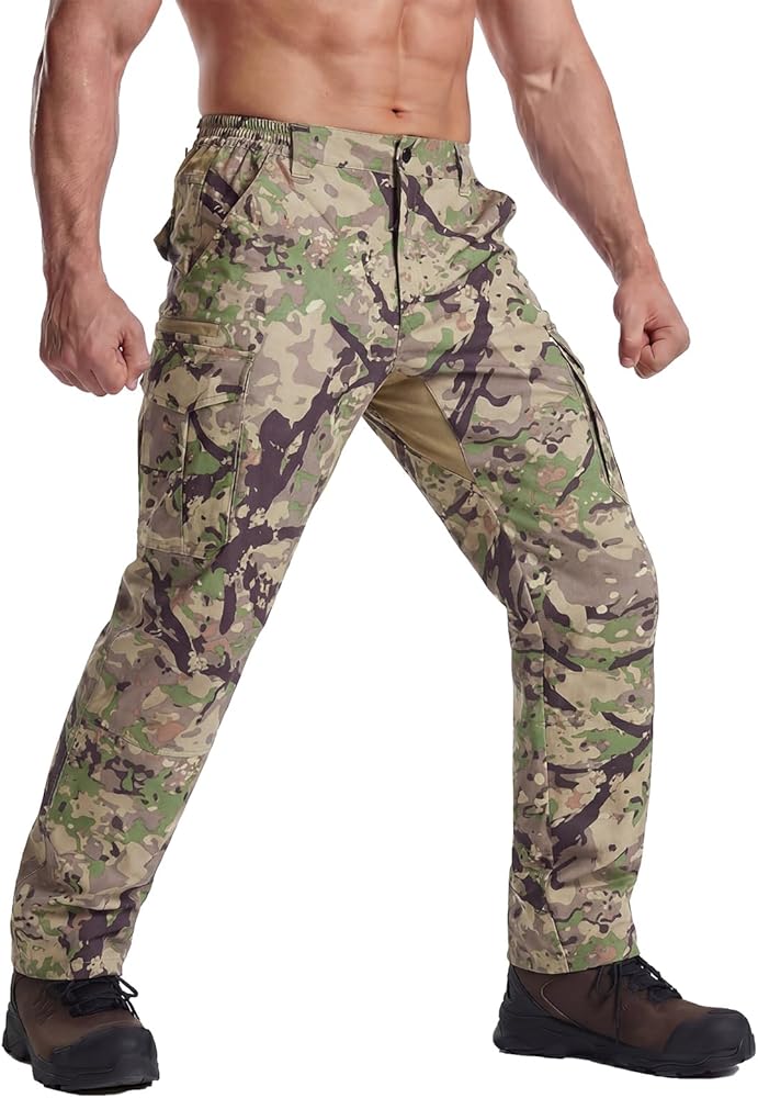 【Practical Pants】:1.With 9 pockets, including 2 cargo pockets, this men pant offers ample storage for your essentials, such as phone, wallet and small hunting accessories. 2.These camo pants offer UV protection, keeping you shielded from harmful sun rays