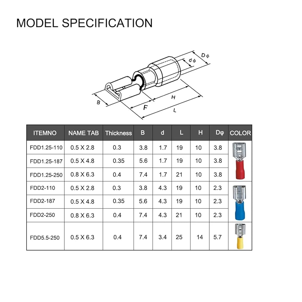 10 Pieces Spade Terminal 2.8mm 4.8mm 6.3mm Male and Female Spade Crimp Terminal Wire Butt Joint Connector Assortment (Color : 2.8mm Blue, Size : 10PCS)
