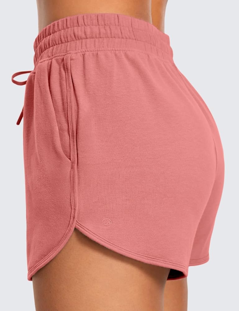 CRZ YOGA Women's Casual Sweat Shorts - 3.5'' Athletic Summer Comfy Cotton for Lounge Gym Jersey with Pockets