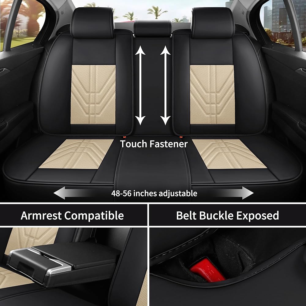 [Widely Fitment] - The back row of this leather car seat covers with a adjustable length design, can be fit for most Acura Lexus Kia Jeep Mazda Mitsubishi Subaru Infiniti GMC cars, SUVs, vans. You can judge whether our products are suitable for your car by the model.