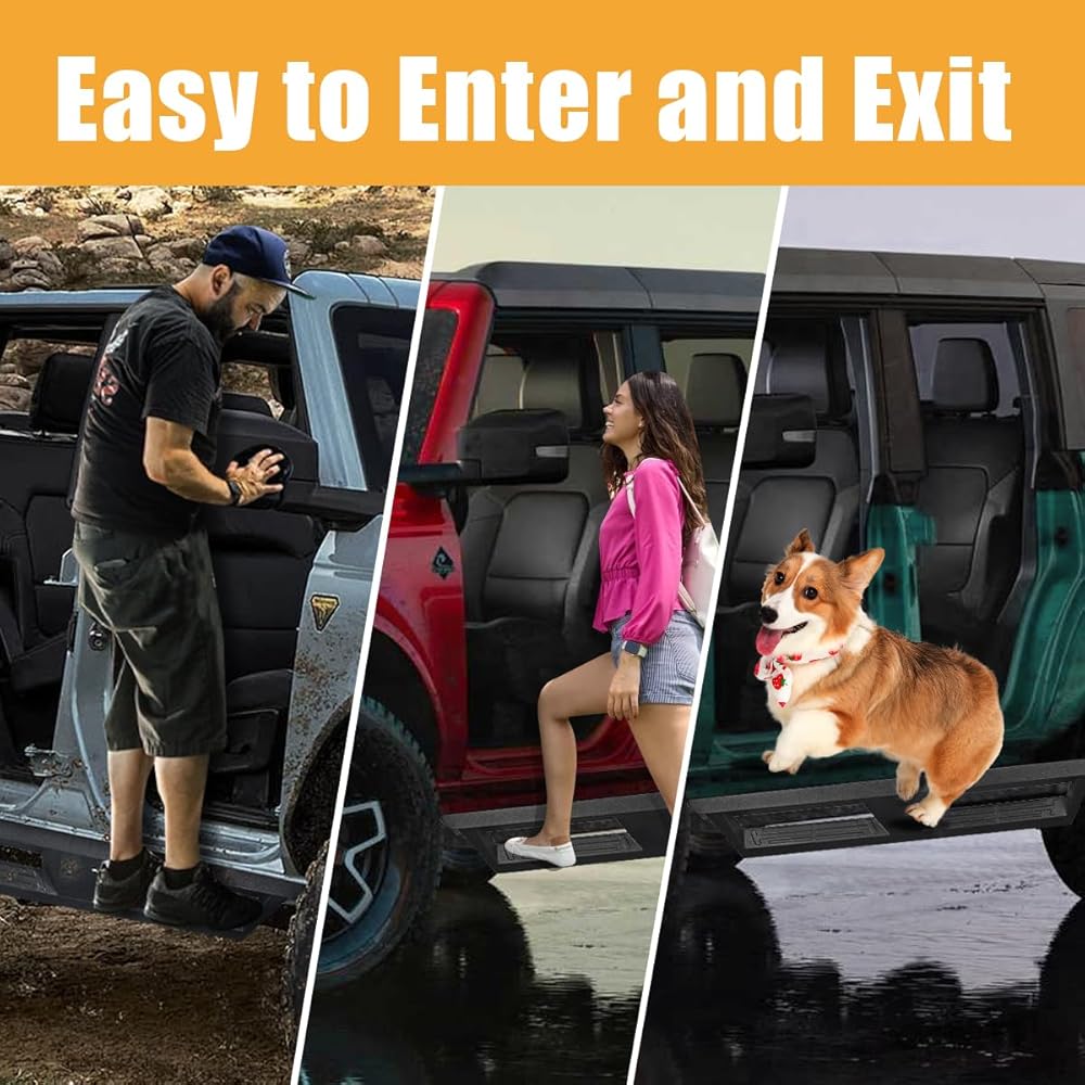 Upgraded Design - Side steps designed with 12.2” width step pads easy for you step in and out your vehicle. Also as side armor to provide additional protection from brush, trail hazards and rocks.