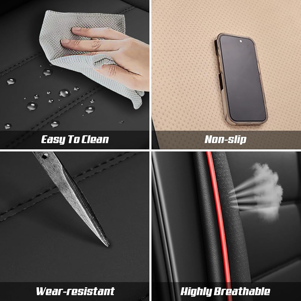 • Comprehensive 360° Protection: Designed for all-around defense, these seat covers shield against spills, scratches, dirt, and everyday wear. Waterproof, stain-resistant, and effortless to clean with a damp cloth, they ensure your car seats remain pristine