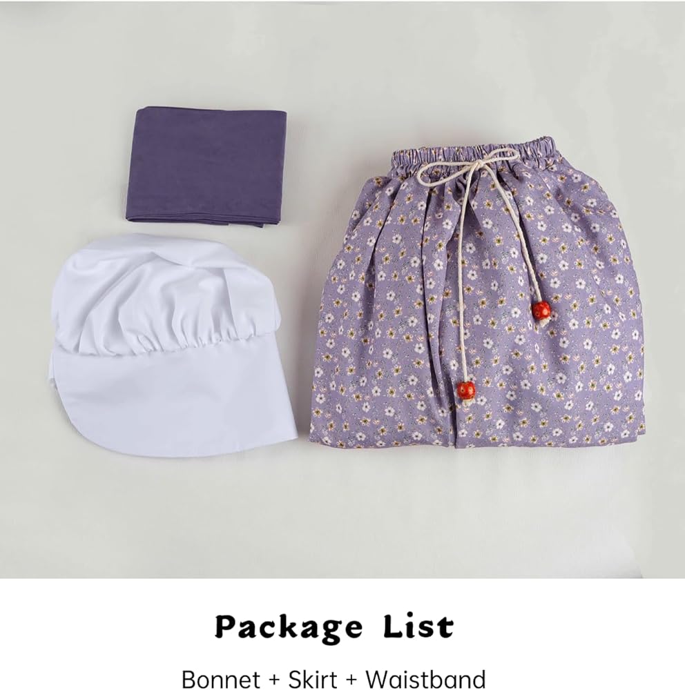 3Pcs Set Colonia Costume: The set includes a long prairie skirt, a matching adjustable waistband, and a white bonnet for women, making it the ultimate package for an authentic colonial costume women purple or any of the six available colors.