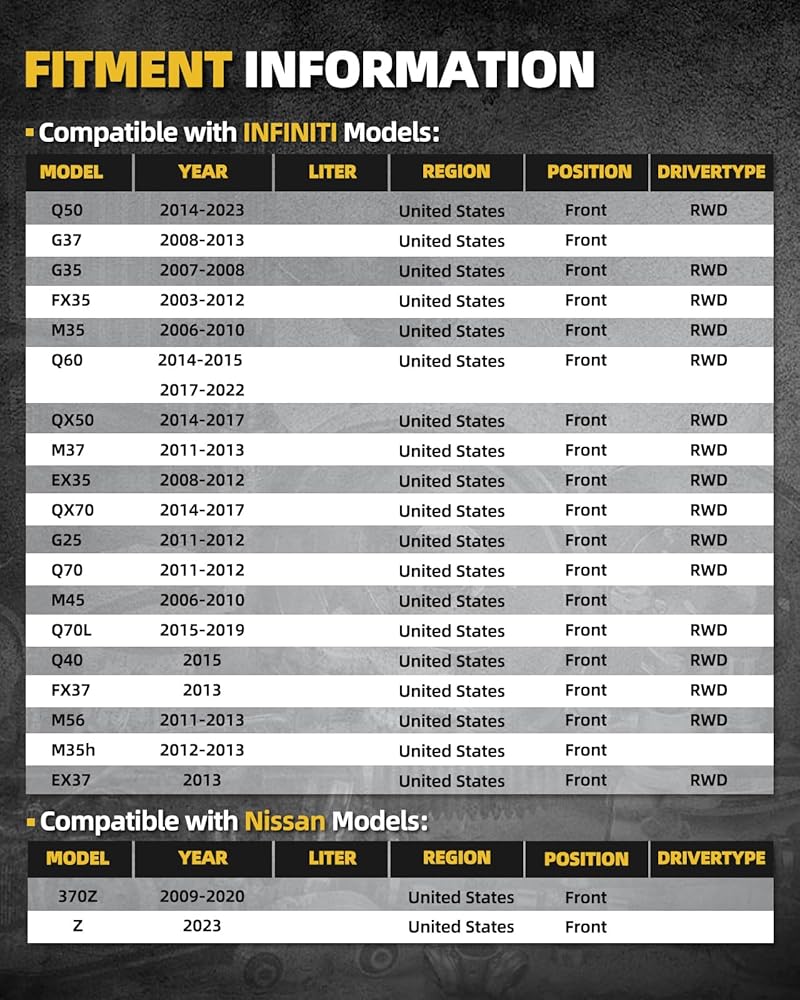 Hub Specifications - OE: 513334 , Position: Front, Lugs: 5 Bolts, Drive Type: RWD, ABS Type: Encoder, Flange Type: 4 Bolt Rectangle. Before purchasing, please check the "Amazon Confirmed Fit" bar, enter all vehicle information (year/make/model/engine/trim) for compatibility and check qualifier notes.