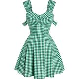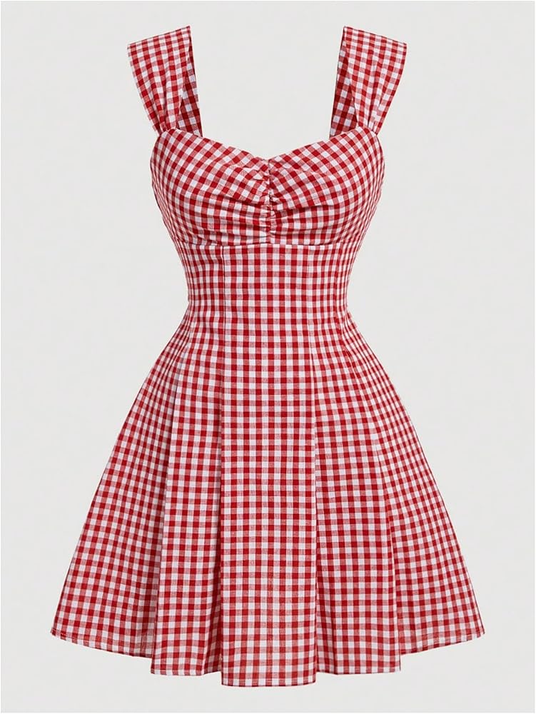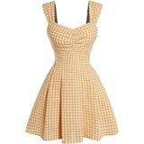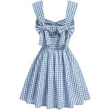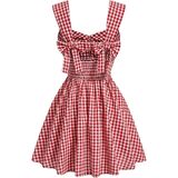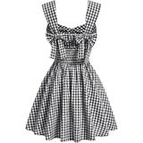 Floerns Women's Plaid Ruched Bust Sleeveless Vintage Bowknot Pleated Short Dresses