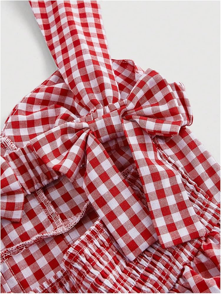 • Feature: Plaid print, ruched bust, wide strap, bowknot, shirred back, pleated short dress for women