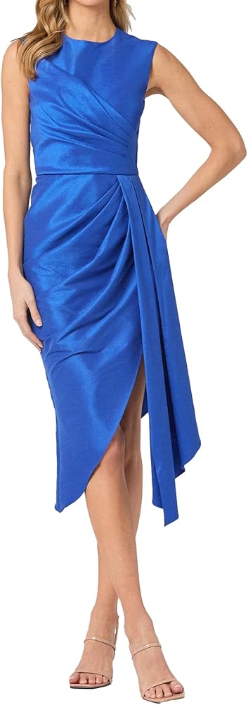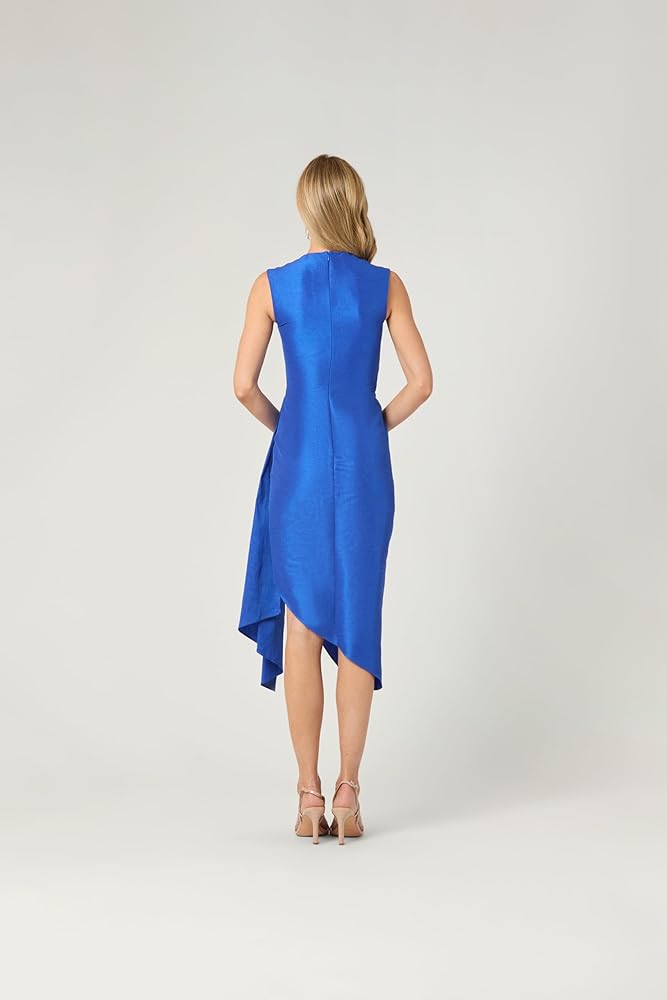 Shoshanna's spring collection features the Colony dress in a deep marine blue taffeta, a figure flattering silhouette in the color of the season.