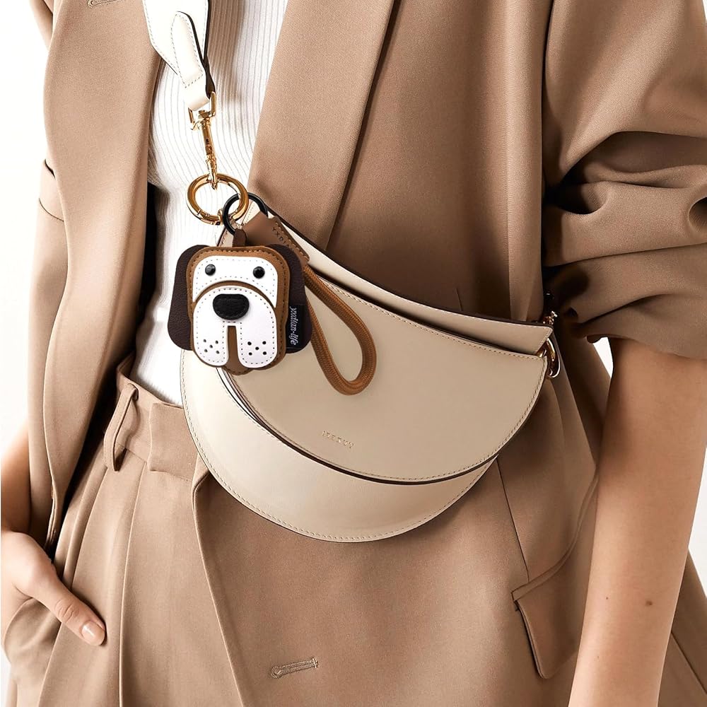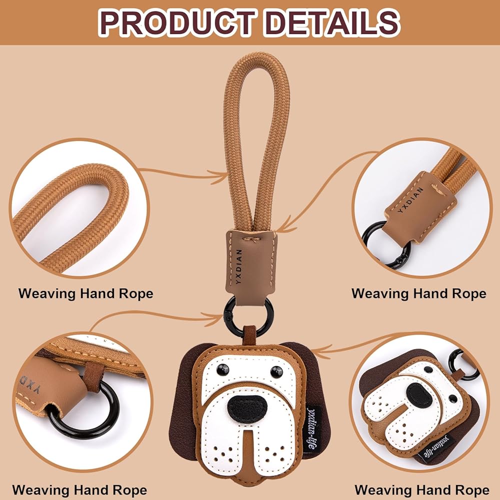 Multi-function Accessories: The cute dog bag charm Ideal for hanging on handbags, backpack,wallets, and purses,while doubling as a decorative accent for car keychains ,the unique design of the ring lock buckle plus hand rope not only gives it a good -looking appearance but also makes it easy to attach to various items.