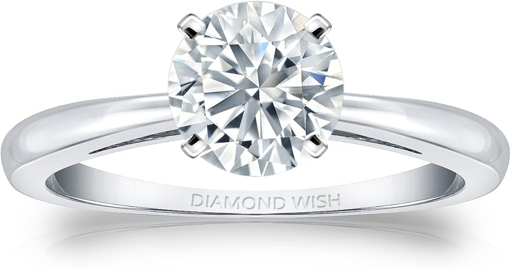 EYE CATCHING - This stunning 0.33 carat TW (4.4 mm) Round-cut Solitaire Diamond Ring by Diamond Wish steals the show as it dazzles in simplicity. The diamond is set in a timeless 14-karat White Gold, 4-prong setting and is mounted atop a gleaming high-polished tapered shank. Available in size 4 to 9