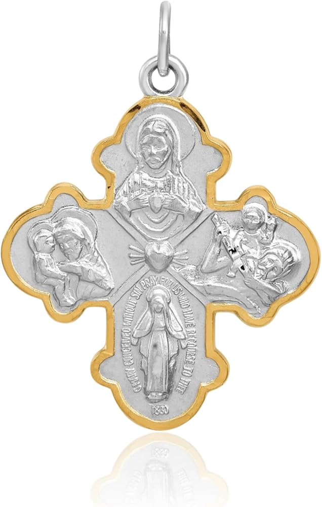 IceCarats 925 Sterling Silver Four Way Holy Cross Religious Medal Necklace Christian Pendant Scapular Charm