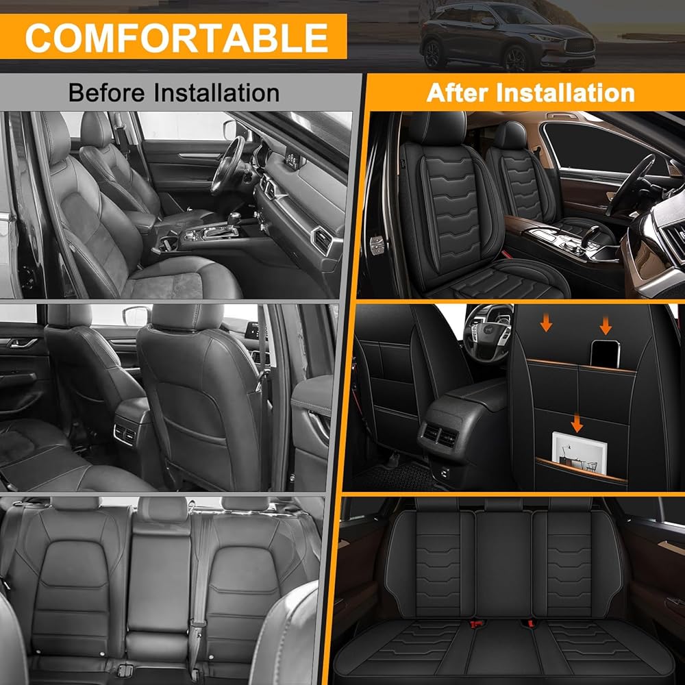 HIGH QUALITY: Our seat covers are made from skin-friendly, high-quality artificial leather. It has good waterproof and wear resistance, which can effectively protect your car seat from wear and tear. It's also soft, making your driving experience more enjoyable.
