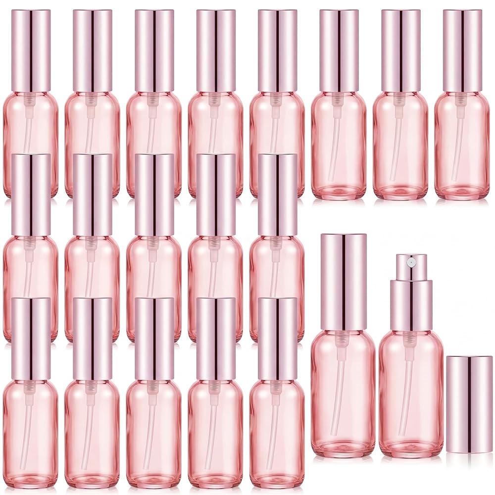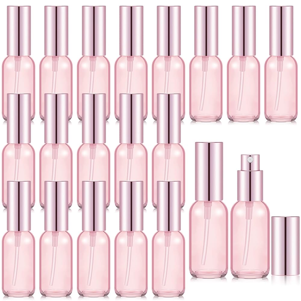 Tessco for you 20 Pcs 1 oz/30 ml Glass Spray Bottles Empty Perfume Atomizer Refillable Clear Decorative Empty Bottles with Fine Mist Sprayer Pump for Face Body Travel(Pink)