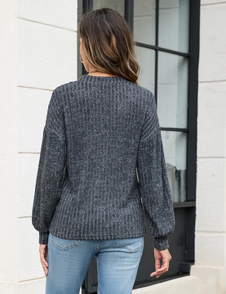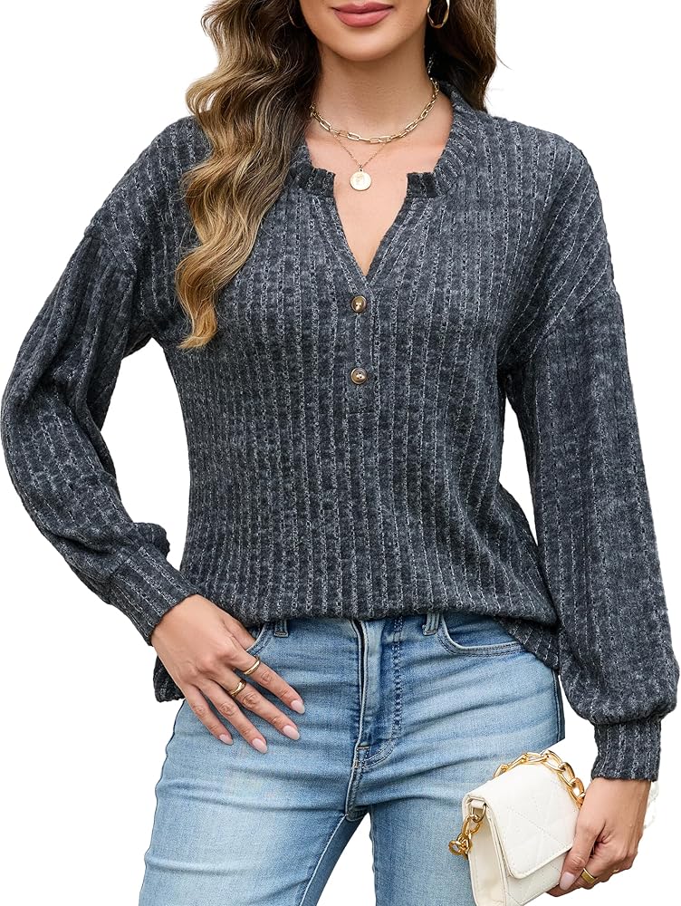 Style: Long sleeve shirts with henley button v neck, casual drop shoulder, fuzzy ribbed knit fabric, solid color design. It's the perfect piece to dress up or down, and great for layering too