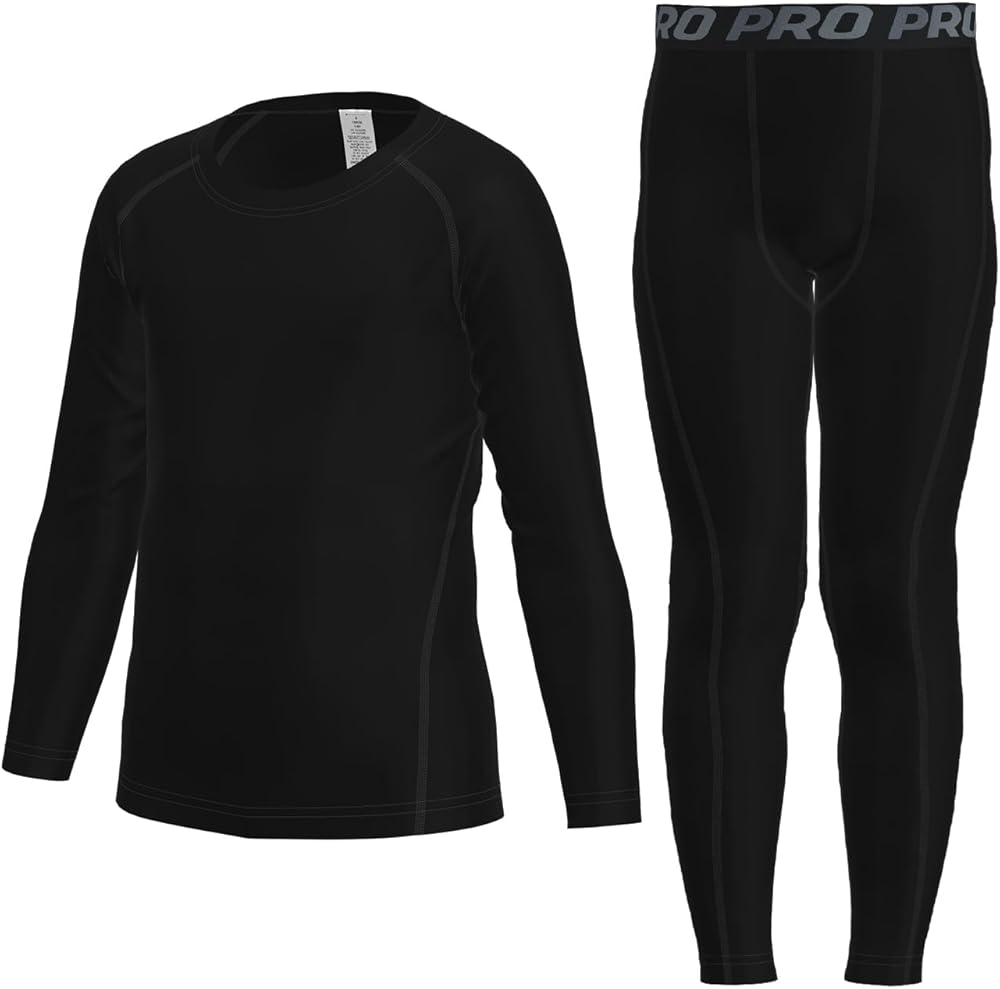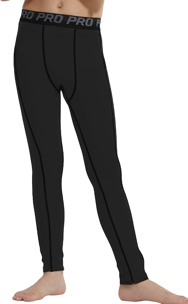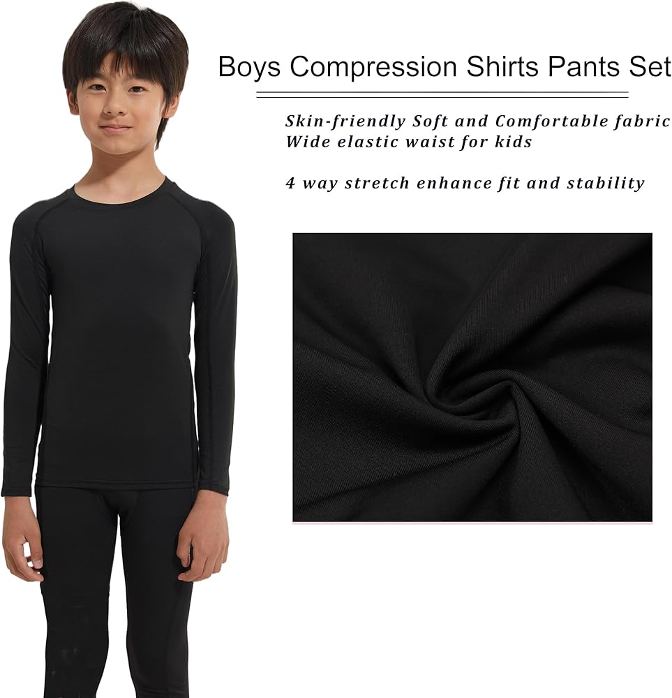 High 4-way Stretch & Flexibility: with 4-way stretch fabric, these compression pants boys compression shirts offer full range of motion for jumps and running. The elastic waistband ensures a secure fit, making them great for outdoor activities like soccer or training