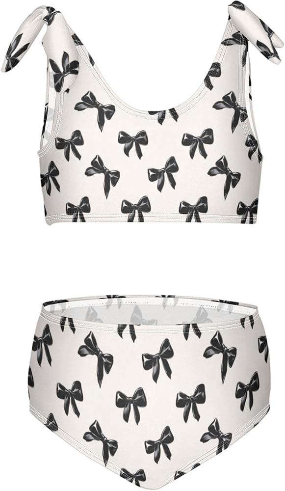 Wusikd Black Bows Girls Swimsuits Two Piece Beige Swimwear Bikini Set for for Girls Size 7-8T in Kuwait