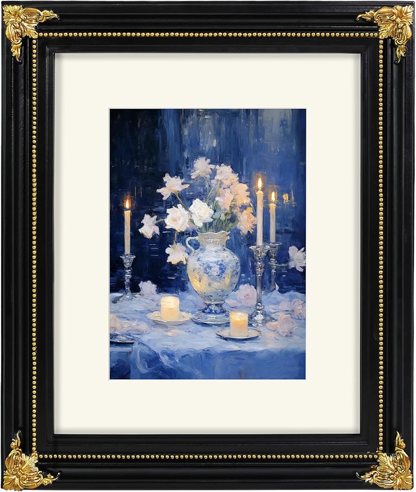 Elegant Design: This 8x10 picture frame is crafted from durable resin with a luxurious black & gold finish, this frame features delicate floral accents on each corner and a beaded border, adding a vintage feeling to any space.