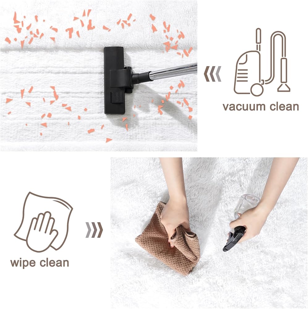 Area Rug Clean Care: When you want to clean the rug, you can use a small handheld vacuum cleaner to remove dust or hand wash with mild water, you can also use a damp cloth to gently wipe the rug, and then put it in a ventilated place to air dry, avoid using the dryer.