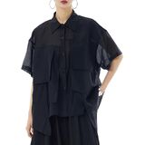 Features: Oversize, loose, lapel, button down, flowy hem and short sleeve. Solid color make it fashionable. There are four versions, Black, White, Brown and Blue.