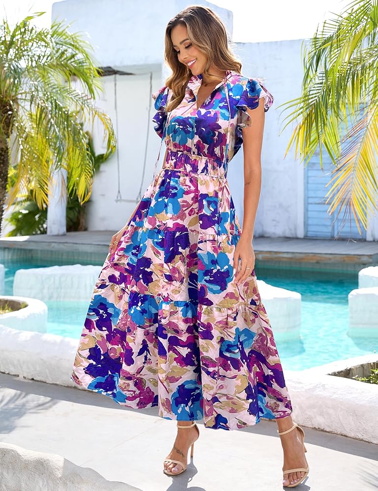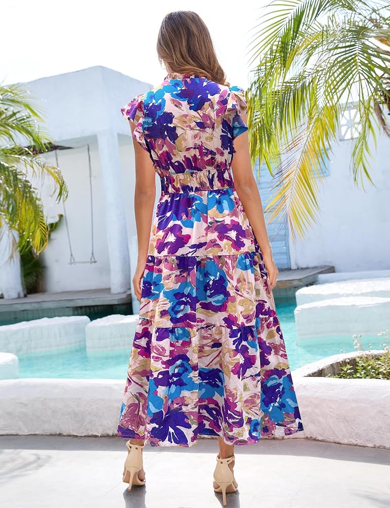 Vintage and Trendy Boho Dress Style: Capture vintage vibes in our vibrant boho floral ruffle sleeve Maxi Dress! The dreamy ruffled sleeves add a playful touch to this swing dress that will transport you back in time and bring you a new fashion era